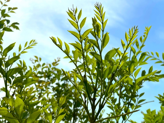 細かい葉が風に揺れる美しい樹形と、成木でも6-8メートル程度のコンパクトさで、シマトネリコに似た洗練された印象を与えます。
