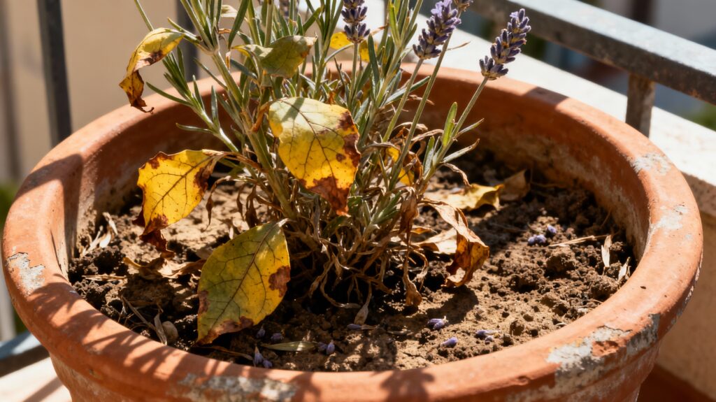 一方、日本の夏はご存知の通り、高温多湿。特に梅雨時期の長雨と、その後のうだるような暑さと湿気は、乾燥を好むラベンダーにとっては過酷すぎる環境です。土が常に湿った状態にあると、根が酸素不足に陥り、正常な呼吸ができなくなって腐り始める「根腐れ」を引き起こします。また、葉が密集していると株内部の風通しが悪化し、湿気がこもって蒸れてしまいます。この「蒸れ」は、灰色かび病などの病気の温床となり、ある日突然、株全体がぐったりと枯れ込む原因となるのです。